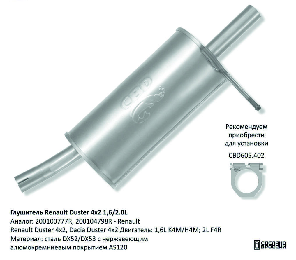 Применяемость: Renault Duster (Рено Дастер) 4×2, Dacia Duster (Дачия Дастер) 4×2. Двигатели: 1,6L K4M/H4M; 2L F4R