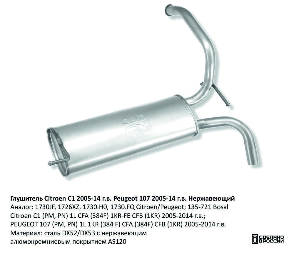 Аналог оригинальных деталей: 1730JF, 1726XZ, 1730.H0, 1730.FQ Citroen/Peugeot; 135-721 Bosal