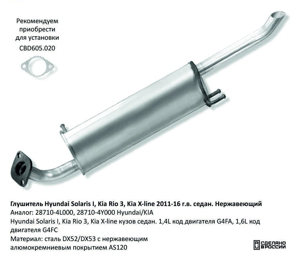 Применяемость: Hyundai Solaris I, Kia Rio 3, Kia X-line кузов седан. 1,4L код двигателя G4FA, 1,6L код двигателя G4FC