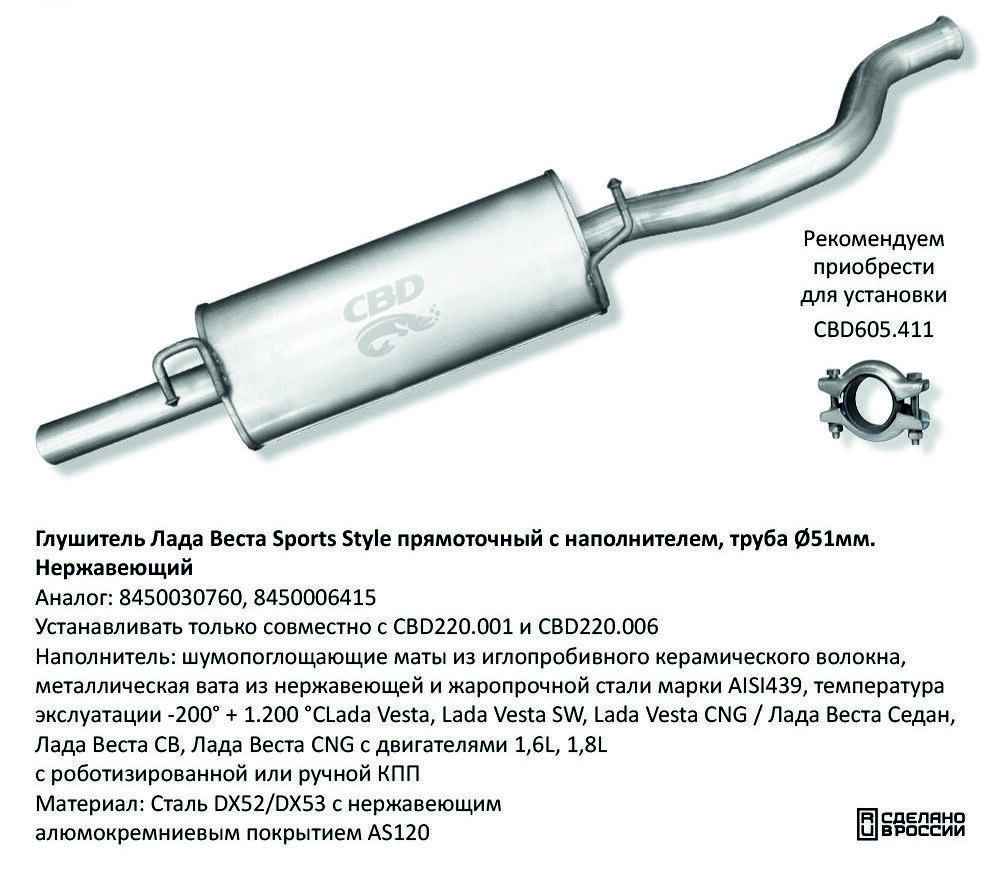 Замена оригинальных номеров: 8450030760, 8450006415. Устанавливать только совместно с CBD220.001 и CBD220.006