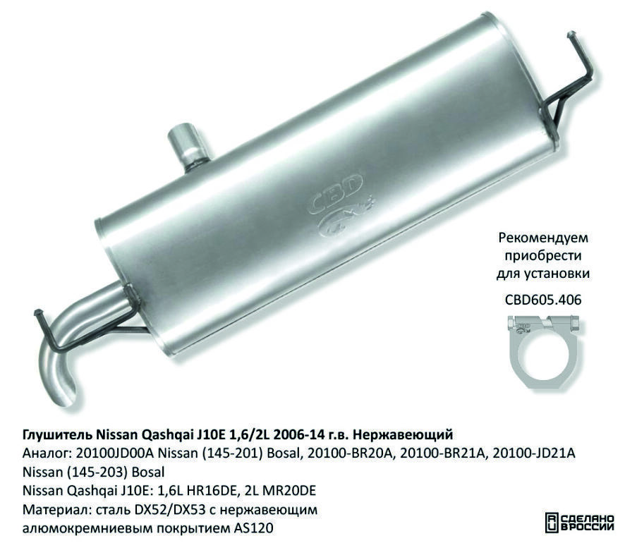 Замена оригинальных деталей: J10E 1,6L HR16DE 20100JD00A Nissan (145-201) Bosal, 2L MR20DE 20100-BR20A, 20100-BR21A, 20100-JD21A Nissan, 145-203 Bosal