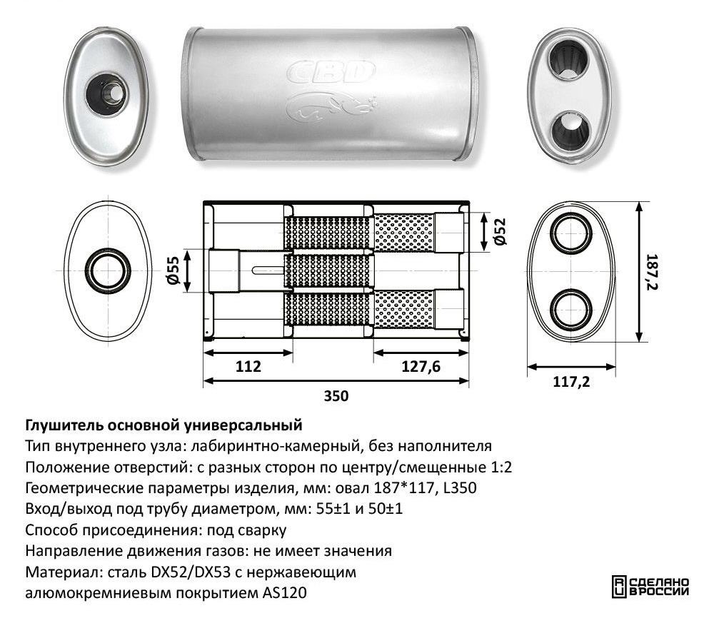 Материал: Cталь c нержавеющим алюмокремниевым покрытием DX52/DX53+AS120
