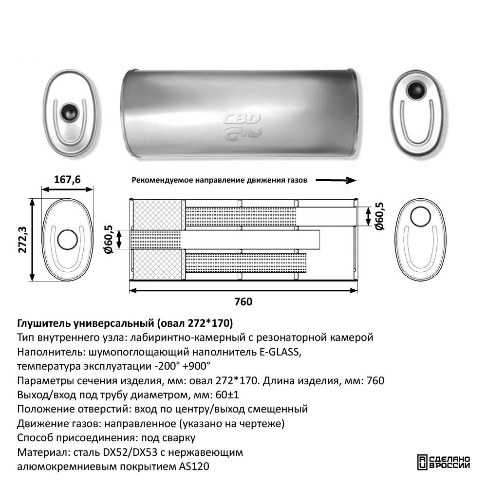 Тип внутреннего узла: Лабиринтно-камерный, с шумопоглощающим наполнителем E-GLASS, температура эксплуатации от -200°C до +900°C