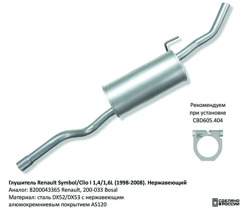Замена оригинальных деталей: 8200043365 Renault, 200–033 Bosal