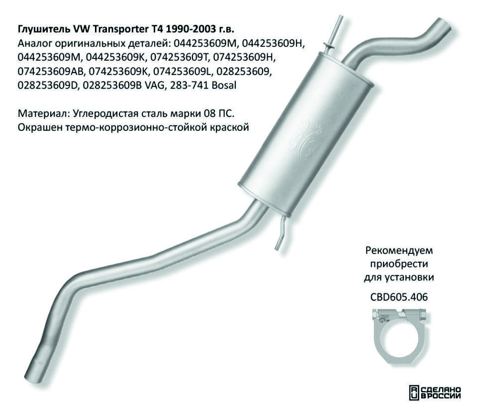 Замена оригинальных деталей: 044253609M, 044253609H, 044253609M, 044253609K, 074253609T, 074253609H, 074253609AB, 074253609K, 074253609L, 028253609, 028253609D , 028253609B VAG, 283-741 Bosal