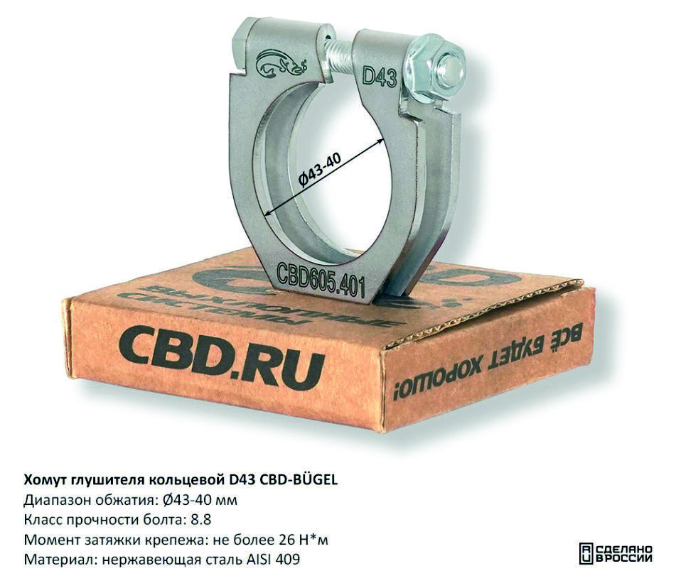 Спецификация: Хомут для соединения выпускных труб одного диаметра, момент затяжки крепежа не более 26 Н·м