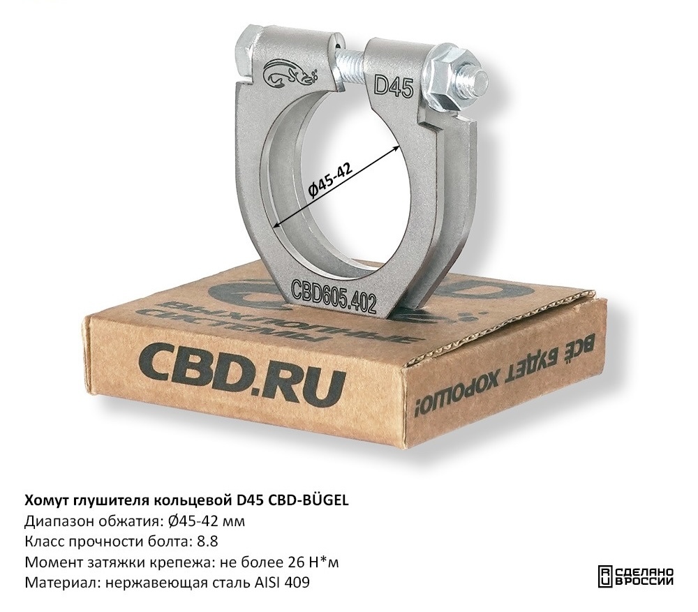 Спецификация: Хомут для соединения выпускных труб одного диаметра, момент затяжки крепежа не более 26 Н·м