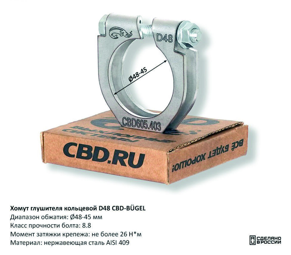 Спецификация: Хомут для соединения выпускных труб одного диаметра, момент затяжки крепежа не более 26 Н·м