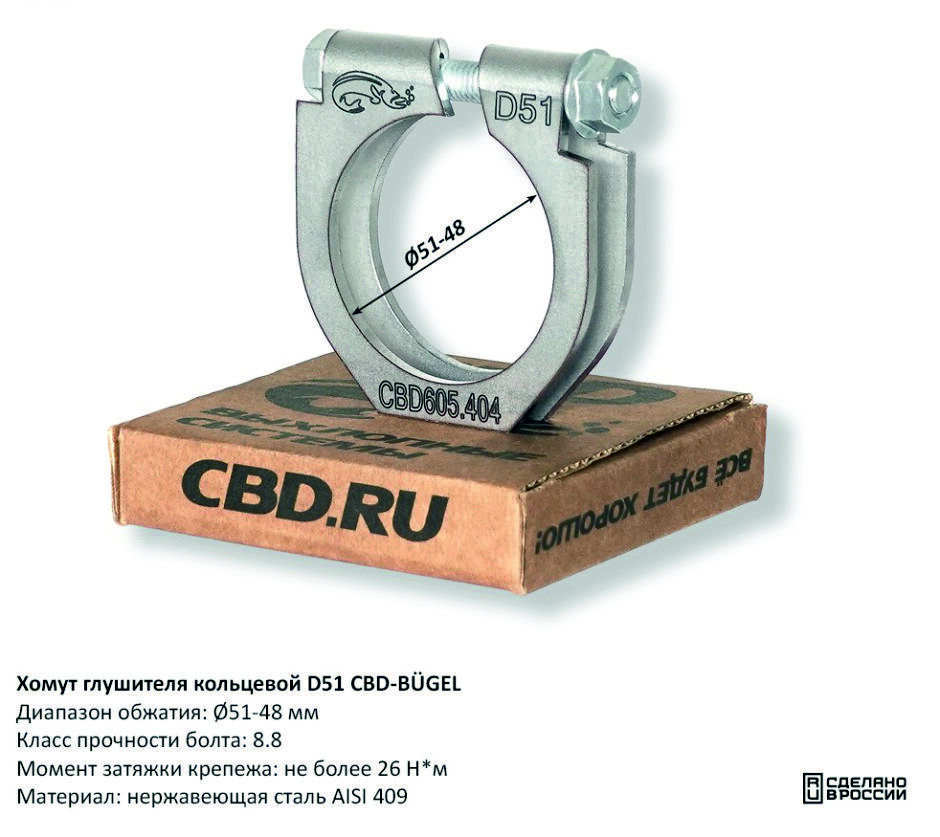 Спецификация: Хомут для соединения выпускных труб одного диаметра, момент затяжки крепежа не более 26 Н·м