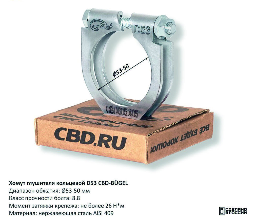 Спецификация: Хомут для соединения выпускных труб одного диаметра, момент затяжки крепежа не более 26 Н·м