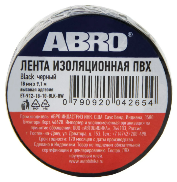 Черная изолента ABRO толщиной 0,12 мм идеально подходит для надежной изоляции проводов и кабелей! Широкая лента (18 мм) обеспечивает быстрое и удобное использование при ремонте, монтаже электропроводки или технике. Плотность материала гарантирует долговечность и защиту от влаги и механических повреждений – ваш комфорт и безопасность гарантированы!