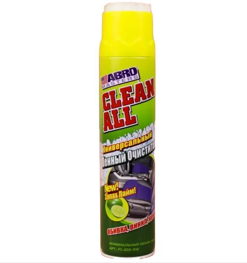 Универсальный очиститель от ABRO – легкость уборки без лишних усилий! Пенная формула моментально удаляет грязь, жир и пятна всего одним нажатием. Обладает приятным ароматом лайма, который наполнит ваш автомобиль свежестью и уютом. Объем 650 мл позволит надолго забыть о покупках чистящих средств. Удобно использовать дома, на кухне, в автомобиле и даже в гараже. Сделайте уборку проще вместе с ABRO!