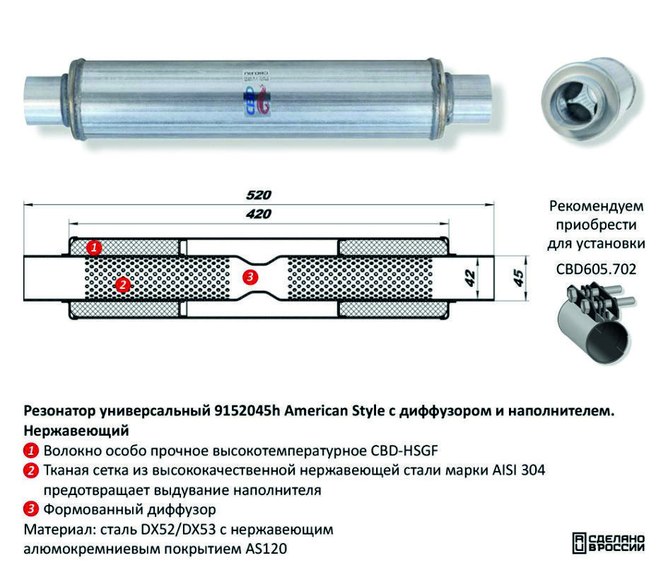 Рекомендуем устанавливать с помощью хомута CBD-CLAMP CBD605.702