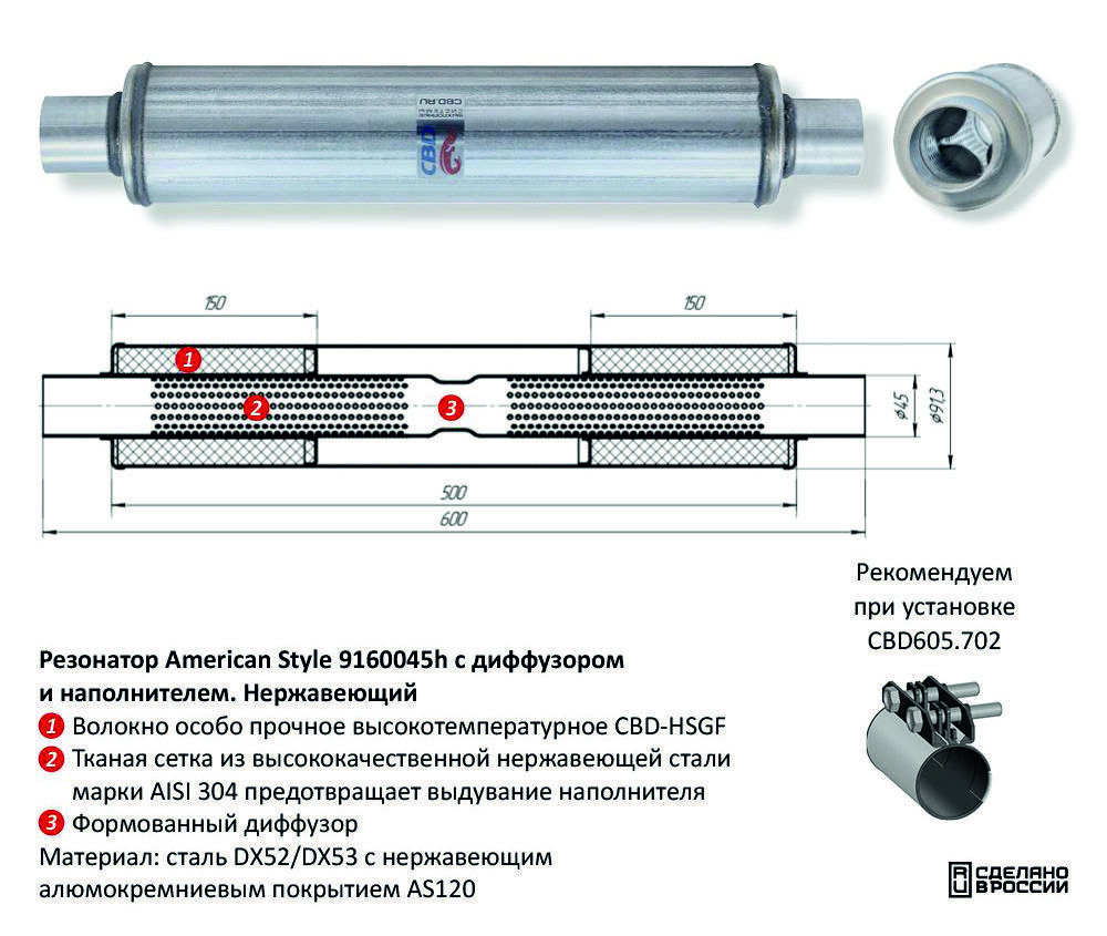 Тип внутреннего узла: 3-камерный с формованным диффузором и шумопоглощающим наполнителем