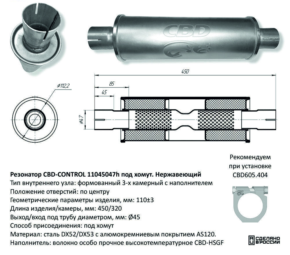 Рекомендуем устанавливать с помощью кольцевого хомута CBD605.404