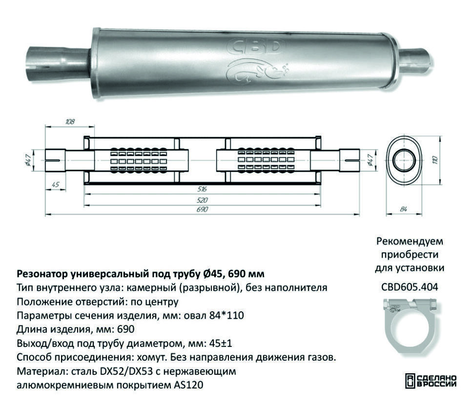 Рекомендуем устанавливать с помощью кольцевого хомута CBD-BÜGEL CBD605.404