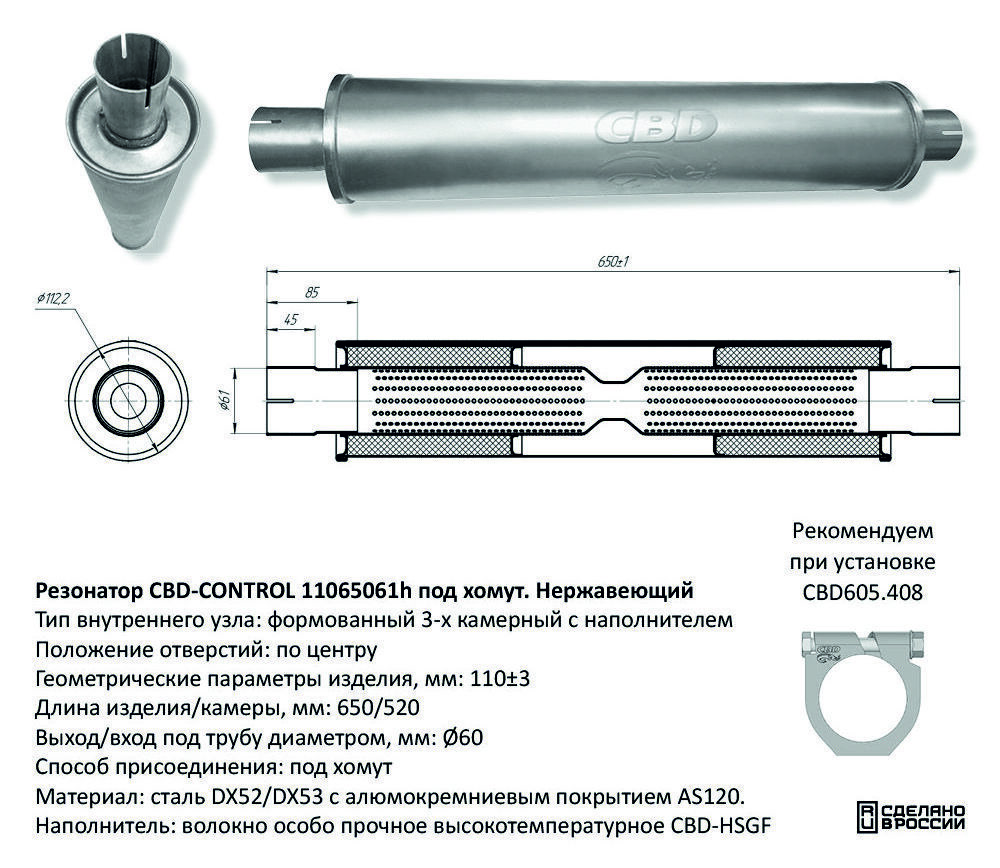 Рекомендуем устанавливать с помощью кольцевого хомута CBD605.408