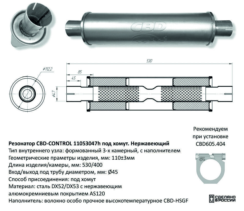 Рекомендуем устанавливать с помощью кольцевого хомута CBD-BÜGEL CBD605.404