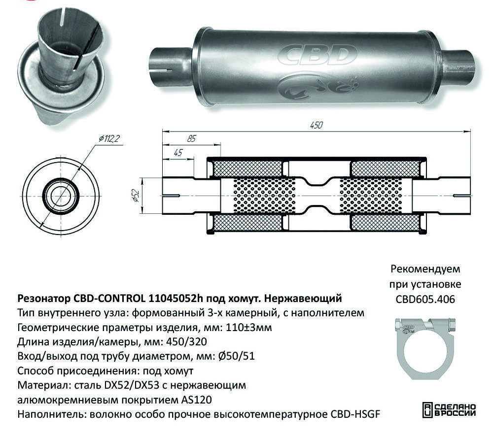 Рекомендуем устанавливать с помощью кольцевого хомута CBD-BÜGEL CBD605.406