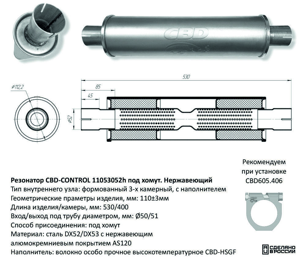 Рекомендуем устанавливать с помощью кольцевого хомута CBD-BÜGEL CBD605.406