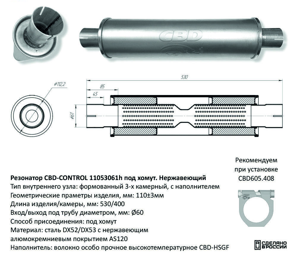 Рекомендуем устанавливать с помощью кольцевого хомута CBD-BÜGEL CBD605.408