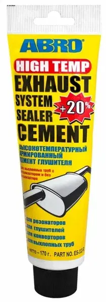 Высокотемпературный армированный цемент глушителя ABRO ES-332-RW обеспечит надежность ремонта выхлопной системы всего одним применением. Быстро затвердевает (через 15 минут уже можно использовать), обладает высокой термостойкостью — выдерживает температуру до 900°C. Удобен в использовании благодаря точной дозировке состава в упаковке. Экономия времени и средств без необходимости посещения автосервиса или покупки нового глушителя.